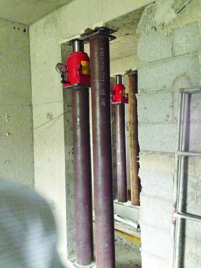 近日,常州新城香溢瀾橋的業(yè)主小徐在一次探房屋建造情況時(shí)有了一個(gè)驚人的發(fā)現(xiàn),房子的大梁竟然用千斤頂撐著,工人正在旁邊用混凝土對(duì)房屋重新進(jìn)行加固施工,此時(shí)有的承重墻內(nèi)的鋼筋已經(jīng)裸露在外,有的地方還有大量鋼管,另外,部分墻面的水泥也已經(jīng)被敲掉了,墻面破爛不堪。那么千斤頂為何會(huì)被用于撐房呢?下面我們一起來(lái)看一下。